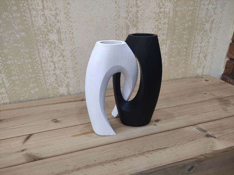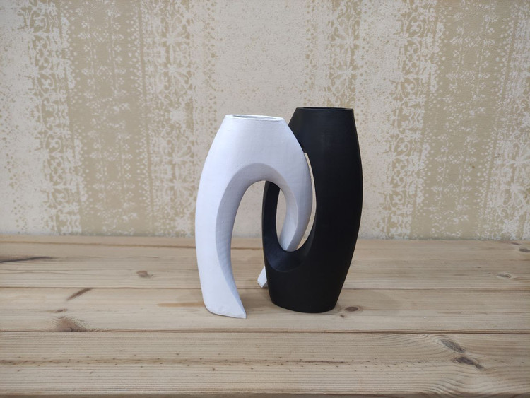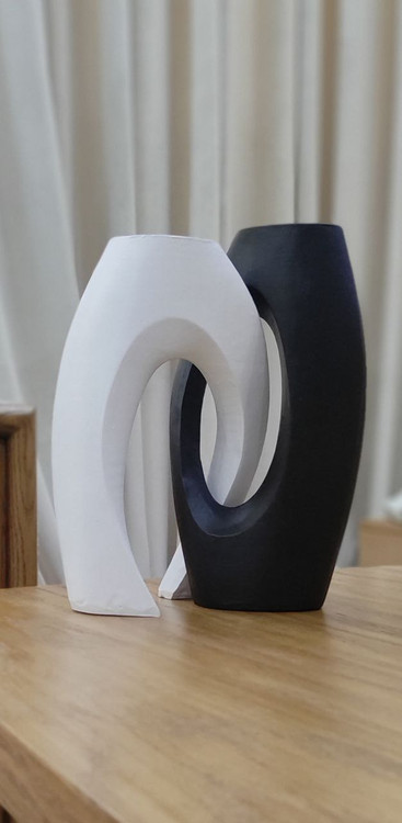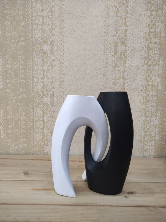 اگه به دنبال یه گزینه مناسب و کاربردی برای تغییر دکوراسیون منزل خودتون هستید پیشنهاد من به شما مجسمه دو تیکه است که شامل دو گلدان مجزا است که به صورت ست ۲عددی قرار می گیرند هم به صورت جفت و هم به صورت تکی قابل استفاده است گلدان دو تیکه از جدیدترین گلدان های روز بازار است و مناسب برای طراحی سبک مینیمال و مدرن هستش و به رنگ سفید و مشکی موجوده و قابلیت ست شدن و استفاده و هماهنگی با بیشتر رنگهای موجود در دکوراسیون منزل شما رو داره