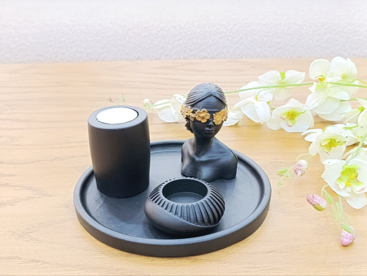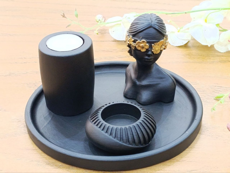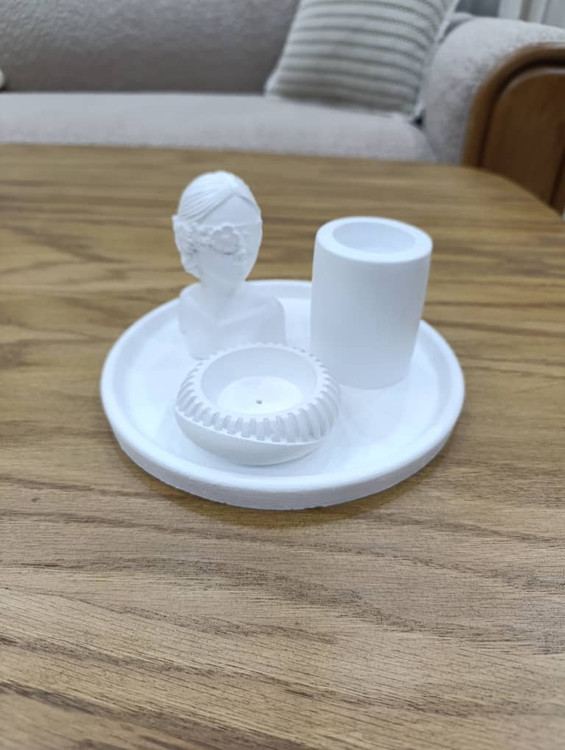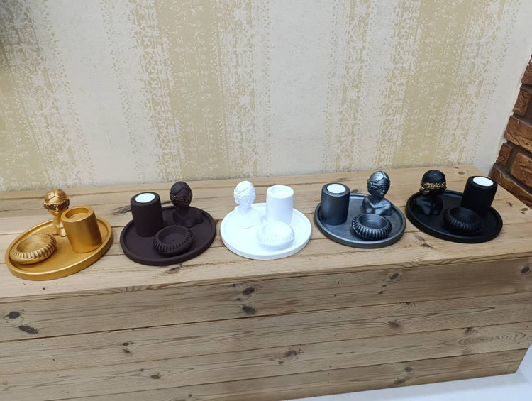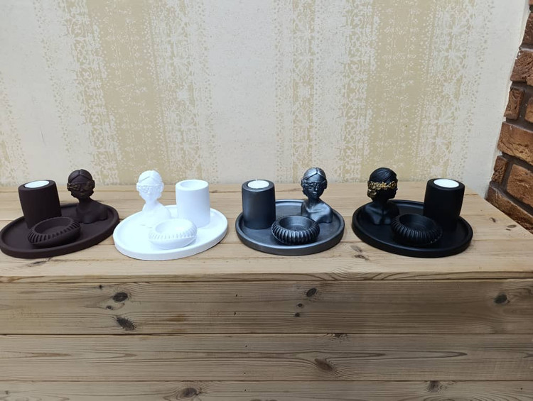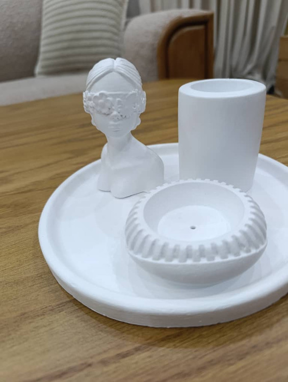 همیشه داشتن مجسمه های دکوری یکی از اجزای ثابت دکوراسیون منزل بوده و هست ما برای شما یک ست زیبا و خاص آوردیم که شامل ۴ قطعه مجسمه دکوری است (سینی گرد،مجسمه دکوری ناتالی،جاعودی شیاردار،جاشمعی استوانه ای)