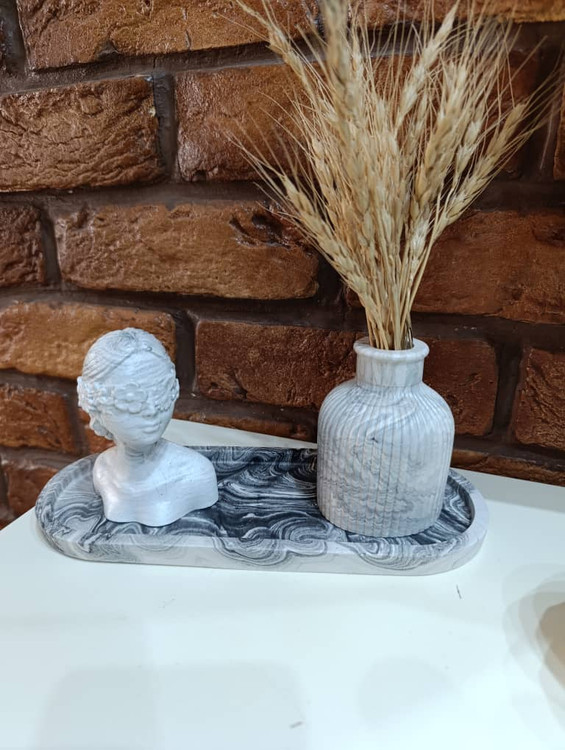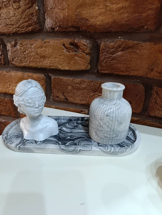 ست دکوری سه تکه سنگ مصنوعی( سینی،گلدان مراکشی، مجسمه ناتالی)