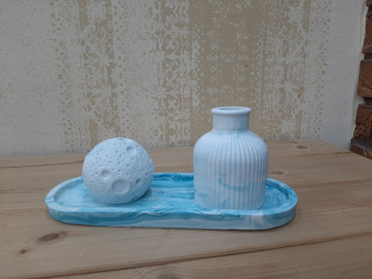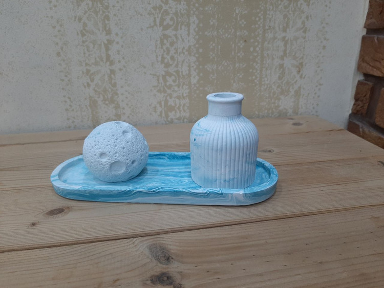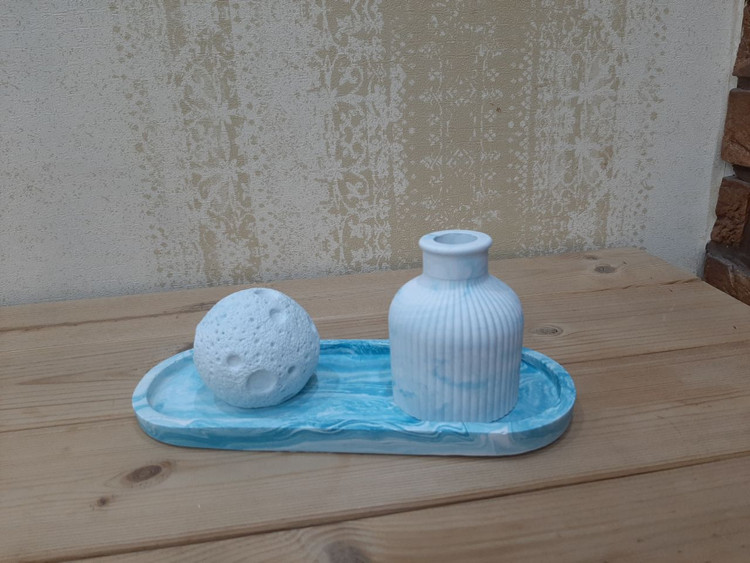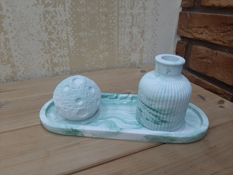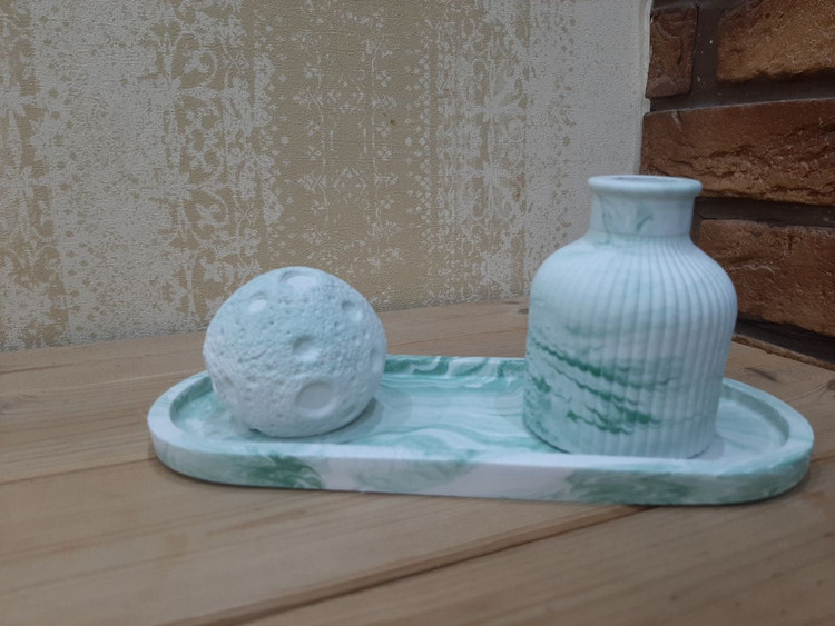ست دکوری رومیزی ۳ تکه سنگ مصنوعی شامل سینی بیضی، گلدان مراکشی و گوی کره ماه یک انتخاب شیک و مدرن برای دکور خانه، محل کار یا هدیه به عزیزان است. این ست با طراحی مینیمال و متریال سنگ مصنوعی مقاوم، جلوهای خاص به میز پذیرایی، کنسول یا شلف دیواری شما میبخشد.