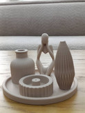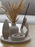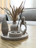 طراحی مدرن و دستساز: هر قطعه کمی متفاوت است و جلوهای خاص به دکور خانه میدهد. جنس با کیفیت: ساخته شده از سنگ مصنوعی مقاوم که در برابر خط و خش و رطوبت دوام دارد. چیدمان هماهنگ: وجود مجسمه، سینی و جاعودی به همراه دو قطعه تزیینی، امکان خلق هارمونی بصری روی میز یا کنسول را فراهم میکند. چند منظوره: مناسب میز پذیرایی، کنسول، میز کار و حتی هدیه دادن به عزیزان.