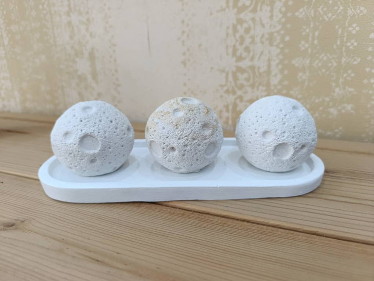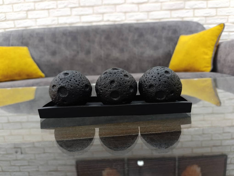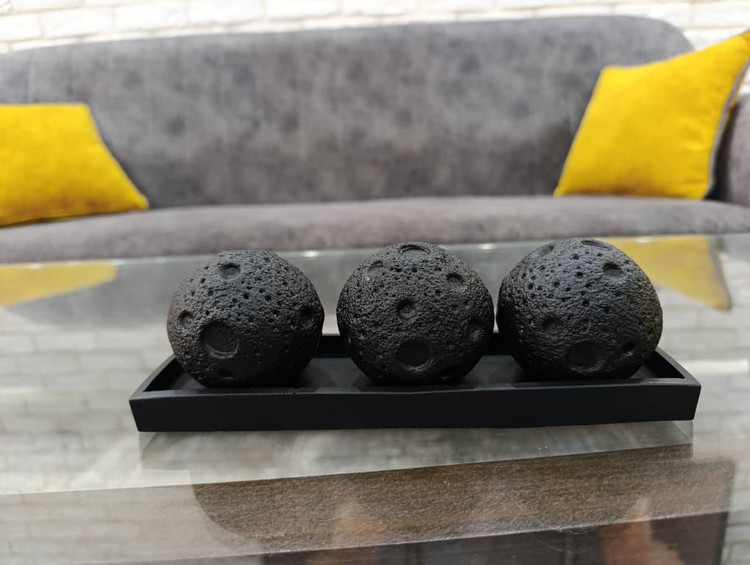 ست دکوری کره ماه با طراحی خاص و الهامگرفته از فرم ماه، یکی از جذابترین مدلهای دکوری سنگ مصنوعی به شمار میرود. کیفیت ساخت بالا و پرداخت دقیق روی سطح کرهها باعث شده جلوهای چشمنواز در هر محیطی ایجاد کند.