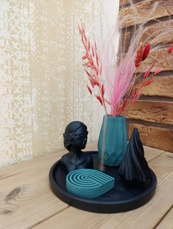 این ست دکوری مناسب برای تزئین میز ناهارخوری، میز عسلی، کنسول ورودی یا هر فضای کوچک دیگری است. طراحی مدرن و مینیمال آن باعث میشود به راحتی با هر دکوراسیون امروزی ست شود و جلوهای شیک به محیط بدهد.