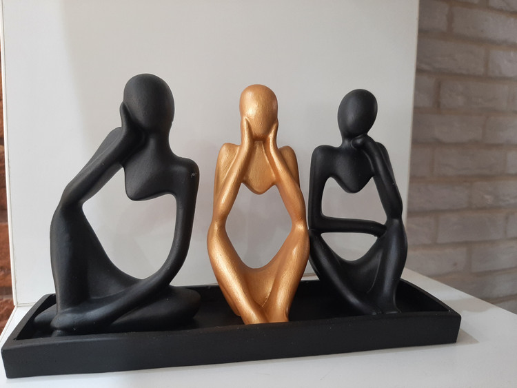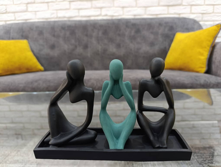ست دکوری مرد متفکر یکی از آن مدلهایی است که بهمحض دیدن، حس خاصی از آرامش و تفکر را منتقل میکند. طراحی ظریف سه مجسمه با فیگورهای متفاوت و سینی هماهنگ، باعث شده چیدمان آن هم زیبا و هم کاربردی باشد.